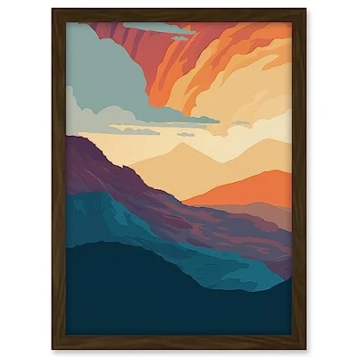 Artery8 Atmospheric Sunset Sky Serene Mountain Landscape Artwork Framed A3 Wall Art Print