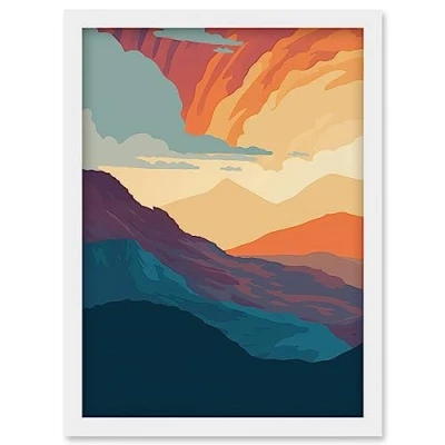 Artery8 Atmospheric Sunset Sky Serene Mountain Landscape Artwork Framed Wall Art Print A4