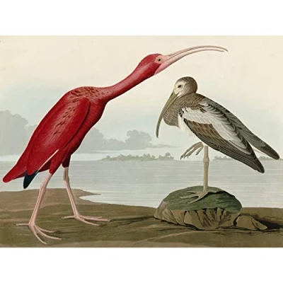 Artery8 Audubon Birds Scarlet Ibis Painting Premium Wall Art Canvas Print 18X24 Inch