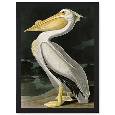Artery8 Audubon Birds White Pelican Painting Nature Animals Artwork Framed Wall Art Print A4