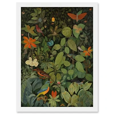 Artery8 Audubon Style Birds and Insects in Jungle Artwork Framed A3 Wall Art Print