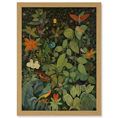 Artery8 Audubon Style Birds and Insects in Jungle Artwork Framed Wall Art Print A4