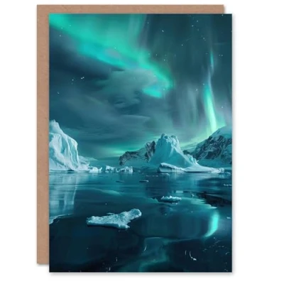 Artery8 Aurora Australis Antarctica Night Iceberg Seascape Greeting Birthday Card Him Her All Blank