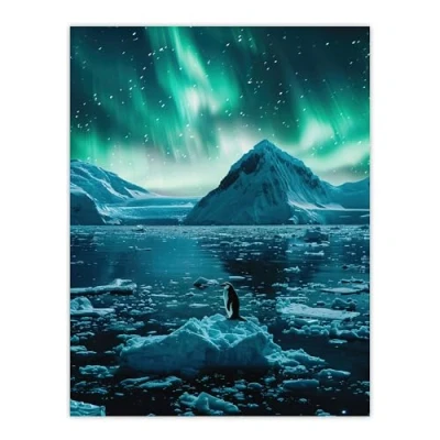 Artery8 Aurora Australis Penguin Antarctica Ice Landscape Living Room Extra Large XL Wall Art Poster Print