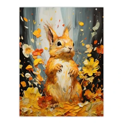 Artery8 Autumn Again Red Squirrel In Amber Leaves Orange Heavy Oil Painting Extra Large XL Wall Art Poster Print