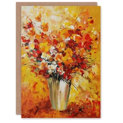 Artery8 Autumn Flowers Floral Bouquet Oil Painting Greeting Birthday Card Him Her All Blank