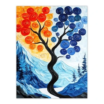 Artery8 Autumn To Winter Tree Folk Art Mountain Landscape Living Room Extra Large XL Wall Poster Print
