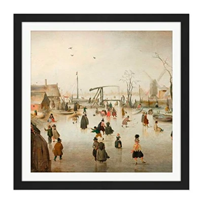 Artery8 Avercamp Iceskating In A Village Painting Square Wooden Framed Wall Art Print Picture 16X16 Inch