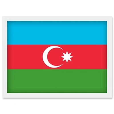 Artery8 Azerbaijan National Flag Patriotic Vexillology World Flags Country Region Poster Artwork Framed Wall Art Print A4