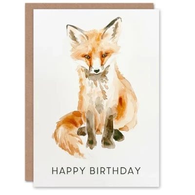 Artery8 Baby Red Fox Bright Soft Watercolour Animal Cub Blank For Him Or Her Art Birthday Card