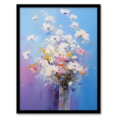 Artery8 Baby's Breath Flowers Oil Painting Purple Blue Pink Wildflower Bouquet in Glass Vase Artwork Framed Wall Art Print A4