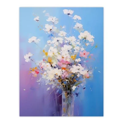 Artery8 Baby's Breath Flowers Oil Painting Purple Blue Pink Wildflower Bouquet in Glass Vase Extra Large XL Wall Art Poster Print