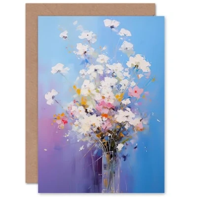 Artery8 Baby's Breath Flowers Wildflower Bouquet for Wife Her Mum Sister Daughter Mom Gran Nan Birthday Thank You Mothers Day Blank Art Greeting Card