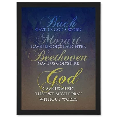 Artery8 Bach Mozart Beethoven God Pray Quote Religious Typography Blue Artwork Framed Wall Art Print A4