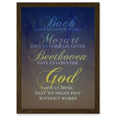 Artery8 Bach Mozart Beethoven God Pray Quote Religious Typography Blue Artwork Framed Wall Art Print A4