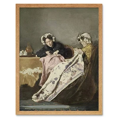 Artery8 Bakker Korff Two Ladies At Their Sewing Painting Art Print Framed Poster Wall Decor 12x16 inch
