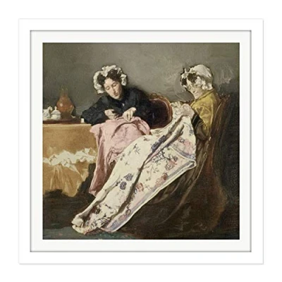 Artery8 Bakker Korff Two Ladies At Their Sewing Painting Square Wooden Framed Wall Art Print Picture 16X16 Inch