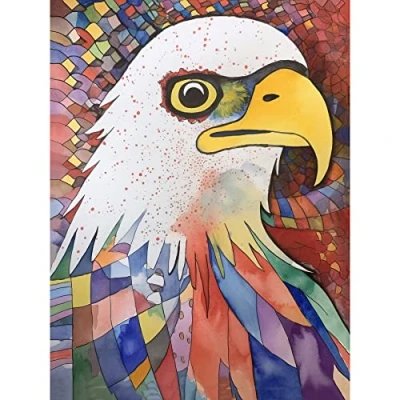 Artery8 Bald Eagle Bird And Abstract Pattern Folk Art Watercolour Painting Large Wall Poster Print Thick Paper 18X24 Inch