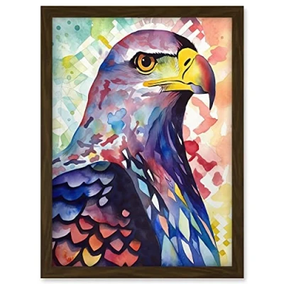 Artery8 Bald Eagle Bird Folk Art Multicoloured Watercolour Painting Artwork Framed A3 Wall Print