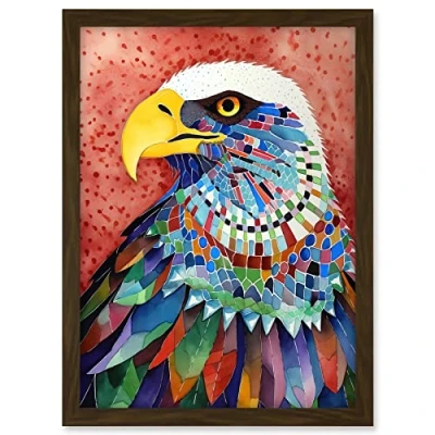 Artery8 Bald Eagle Bird With Multicoloured Feathers Folk Art Watercolour Painting Artwork Framed A3 Wall Print