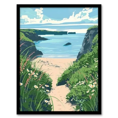 Artery8 Barafundle Bay Seaside Spring Flowers Wales Beach Living Room Artwork Framed Wall Art Print A4