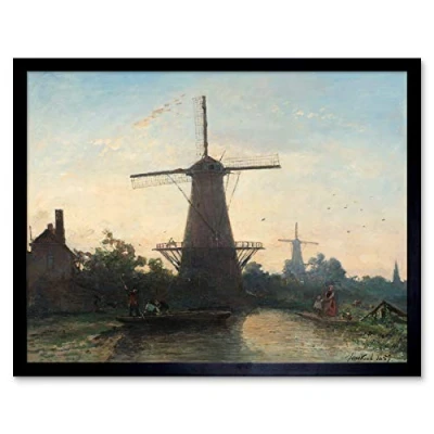 Artery8 Barthold Jongkind Windmills Near Rotterdam Painting Art Print Framed Poster Wall Decor 12x16 inch