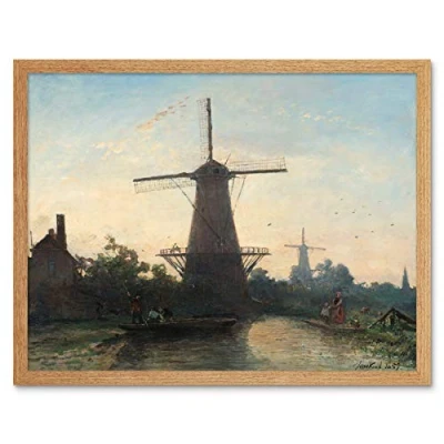 Artery8 Barthold Jongkind Windmills Near Rotterdam Painting Art Print Framed Poster Wall Decor 12x16 inch