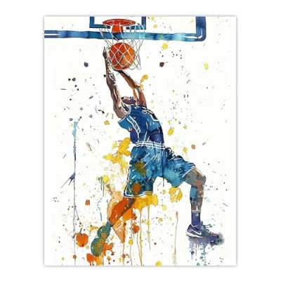 Artery8 Basketball Player Slam Dunk Sport Watercolour Man Cave Extra Large XL Wall Art Poster Print