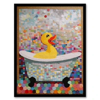 Artery8 Bathtime Yellow Duck In Bathtub Colourful Artwork Bath Time Mosaic Bathroom Painting Framed Wall Art Print A4