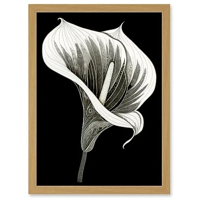 Artery8 Batik Style Black and White Calla Lily Flower Artwork Framed A3 Wall Art Print