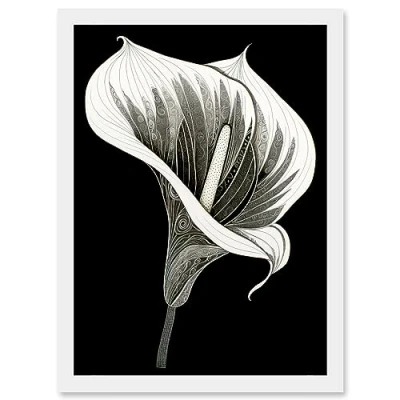 Artery8 Batik Style Black and White Calla Lily Flower Artwork Framed A3 Wall Art Print