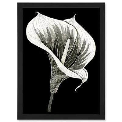Artery8 Batik Style Black and White Calla Lily Flower Artwork Framed Wall Art Print A4