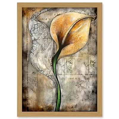 Artery8 Batik Style Pattern Calla Lily Flower Bloom Artwork Framed A3 Wall Art Print