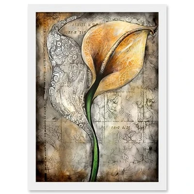 Artery8 Batik Style Pattern Calla Lily Flower Bloom Artwork Framed Wall Art Print A4