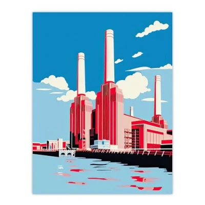 Artery8 Battersea Power Station Graphic Pink and Blue Extra Large XL Wall Art Poster Print