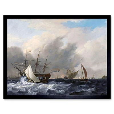 Artery8 Baur Navys Man Of War Amsterdam Ship Seascape Painting Art Print Framed Poster Wall Decor 12x16 inch