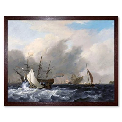 Artery8 Baur Navys Man Of War Amsterdam Ship Seascape Painting Art Print Framed Poster Wall Decor 12x16 inch