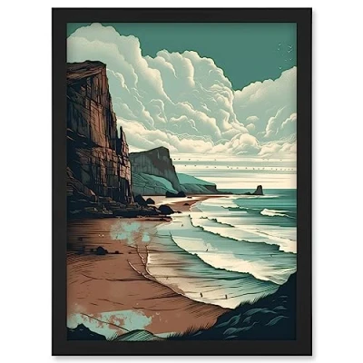 Artery8 Bay with Cliffs Dramatic Coastal Landscape Artwork Framed Wall Art Print A4