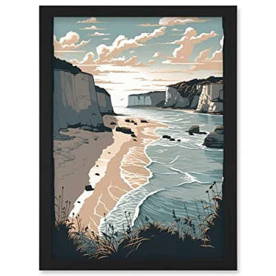 Artery8 Bay with Cliffs Pastel Colour Coastal Landscape Artwork Framed Wall Art Print A4