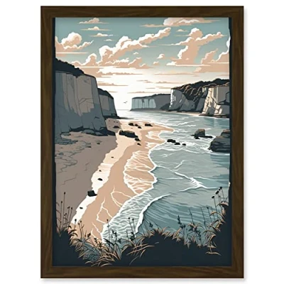 Artery8 Bay with Cliffs Pastel Colour Coastal Landscape Artwork Framed Wall Art Print A4