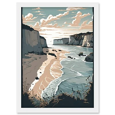 Artery8 Bay with Cliffs Pastel Colour Coastal Landscape Artwork Framed Wall Art Print A4