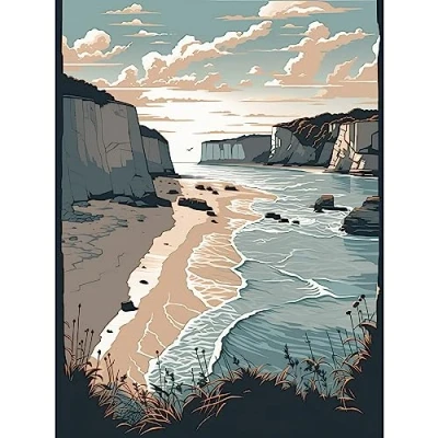 Artery8 Bay with Cliffs Pastel Colour Coastal Landscape Extra Large XL Wall Art Poster Print