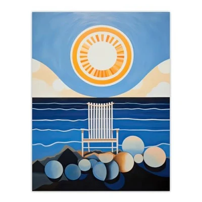 Artery8 Beach Chair Daydream Oil Painting Blue Orange Abstract Seascape on a Sunny Day Bathroom Artwork Extra Large XL Wall Art Poster Print