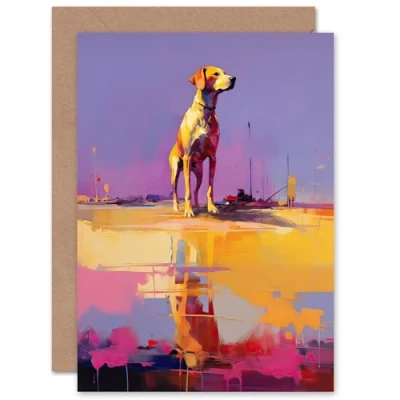 Artery8 Beach Golden Labrador Painting for Him or Her Man Woman Birthday Thank You Get Well Soon Blank Art Greeting Card