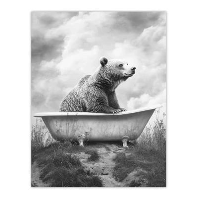 Artery8 Bear Bath in Mountain Bathtub Black White Surreal Bathroom Toilet Extra Large XL Wall Art Poster Print