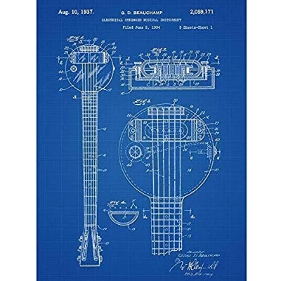 Artery8 Beauchamp Electrical Fry Pan Guitar 1937 Patent Plan Unframed Wall Art Print Poster Home Decor Premium
