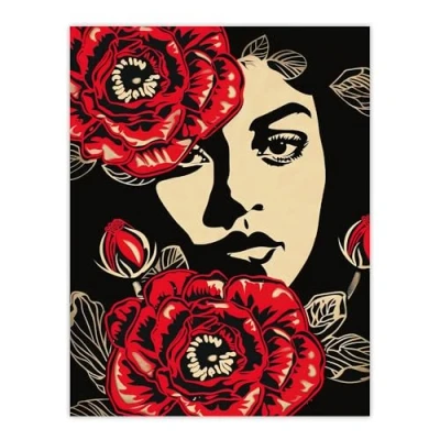 Artery8 Beauty in Bloom Woman Face and Flowers Design Living Room Large Wall Art Poster Print Thick Paper 18X24 Inch