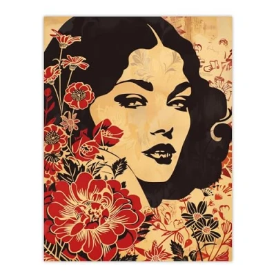 Artery8 Beauty in Bloom Woman Floral Portrait Design Living Room Extra Large XL Wall Art Poster Print