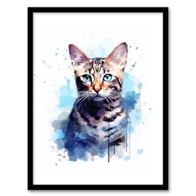 Artery8 Bengal Cat Lovers Gift Watercolour Pet Portrait Painting Artwork Framed Wall Art Print A4