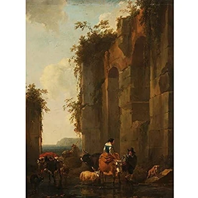 Artery8 Berchem Ruins In Italy Cattle Painting Unframed Wall Art Print Poster Home Decor Premium